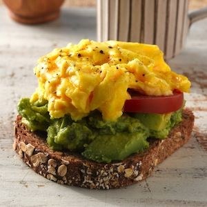 Sí, es todo tan fácil como parece. Tan solo tenemos que hacer primero un revuelto con el huevo, con una gotita de aceite de oliva y sal. Después doraremos ligeramente el pan. Sobre la rebanada untaremos el aguacate bien maduro, añadiremos pimienta negra y una pizca de sal y después agregaremos unas rodajas finas de tomate natural y, por último, el revuelto. Una verdadera delicia que te será muy útil si por tu horario de trabajo vas a comer tarde.