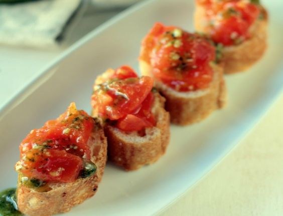 Para comenzar, vamos a partir el pan en pequeñas rebanaditas, con dos será suficiente para el aperitivo de media mañana. Después, vamos a agregar el tomate cortado en daditos y aliñamos con aceite de oliva, sal, pimienta y albahaca.